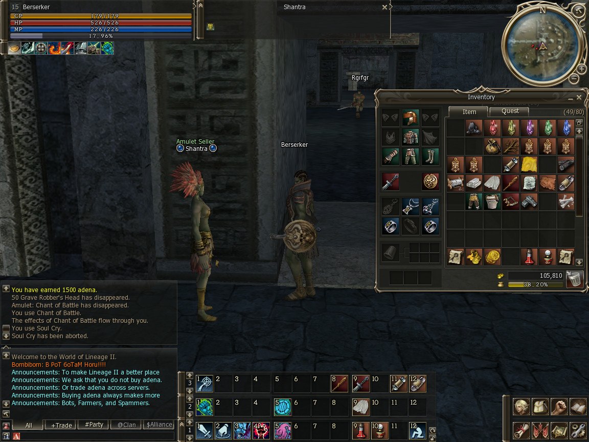 К 15 уровню у меня на счету уже было 100 тысяч адены, что казалось небольшим состоянием для новичка.